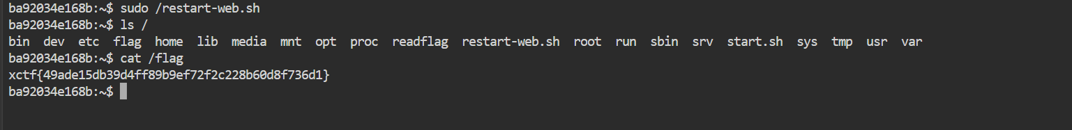 然后按题目要求重启服务,等15秒读裁判机生成的flag即可