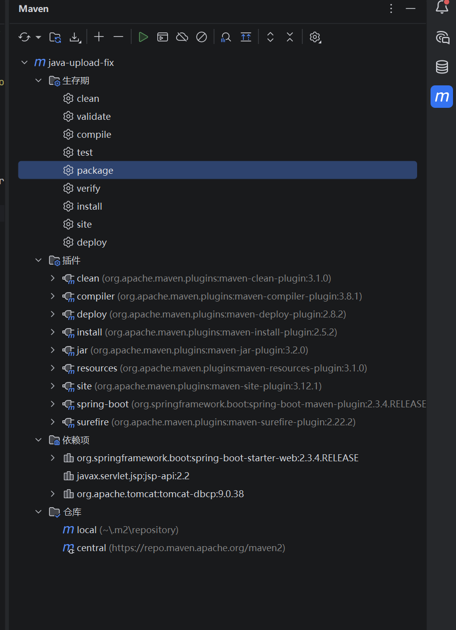 然后直接在maven面板双击package生成新的jar包上传即可(在target里面)