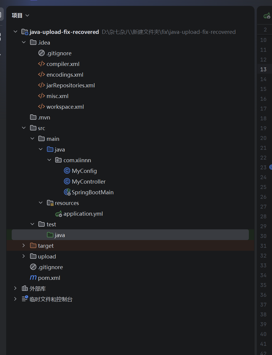 我们用idea新建一个项目,复制之前jar包里面的application,yml和pom.xml,然后复制对应的类名和包名